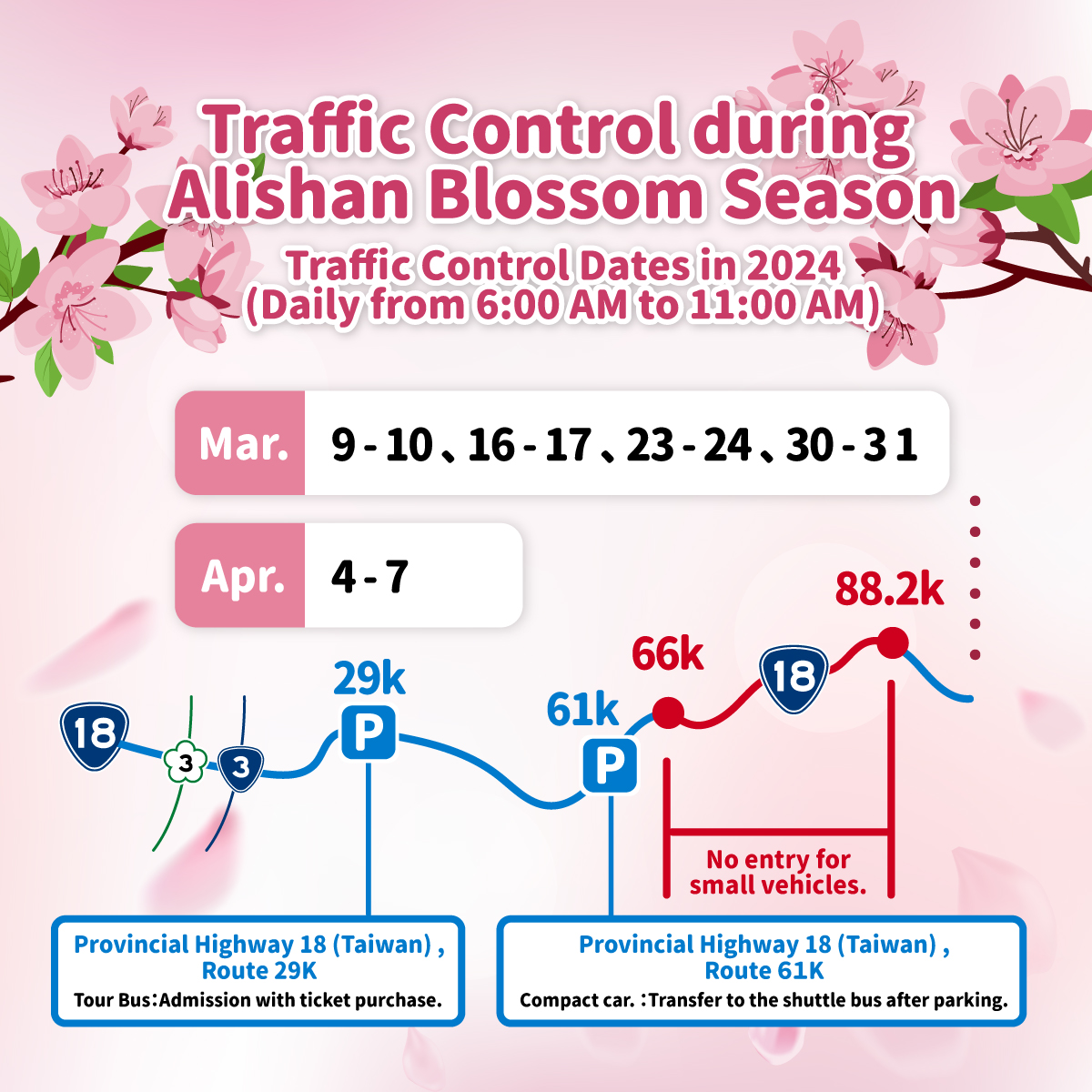 Q3: 阿里山の花の季節の交通規制中、花の季節のイベントに参加するにはどうすればいいですか?