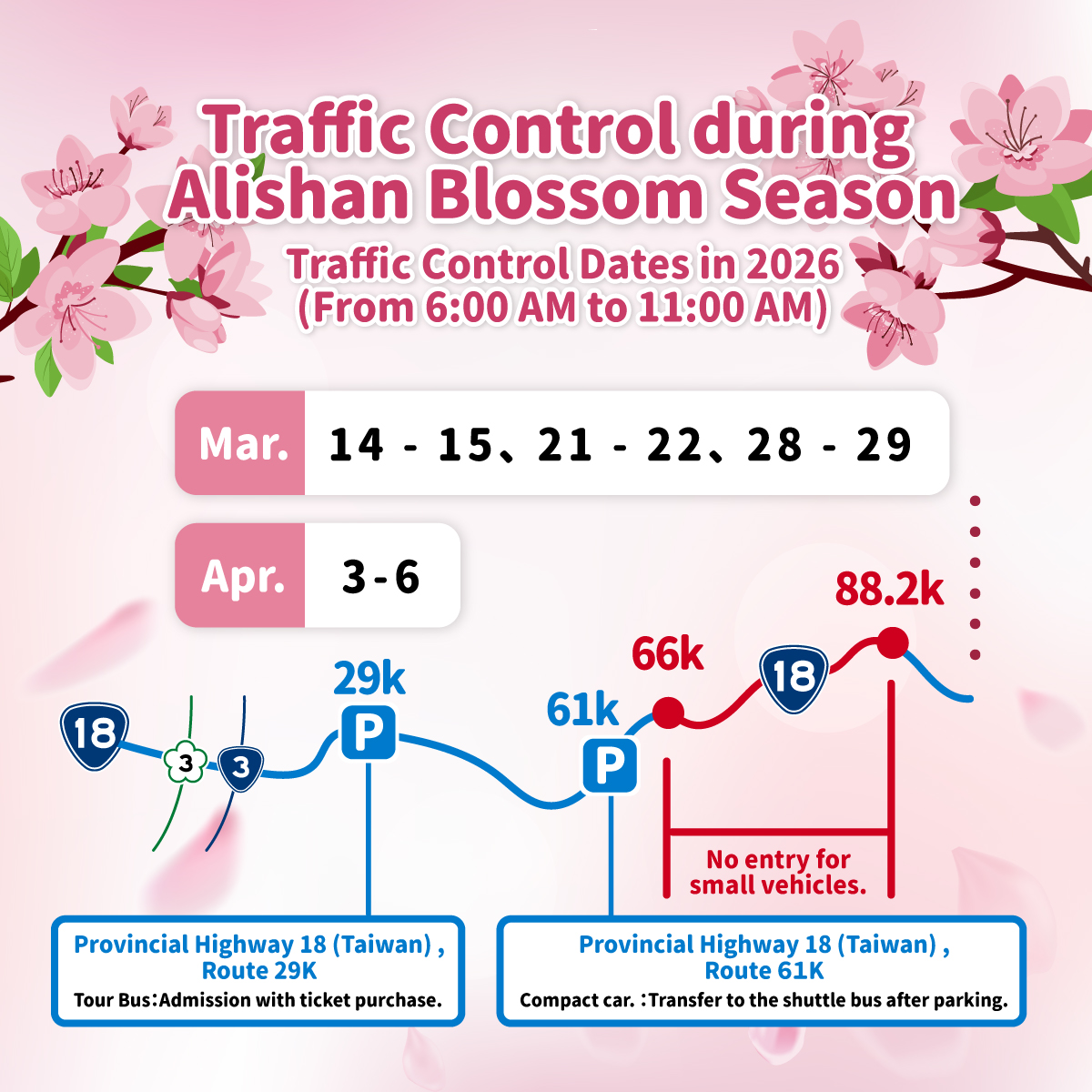 Q2: What is the traffic control schedule during the cherry blossom season in Alishan?