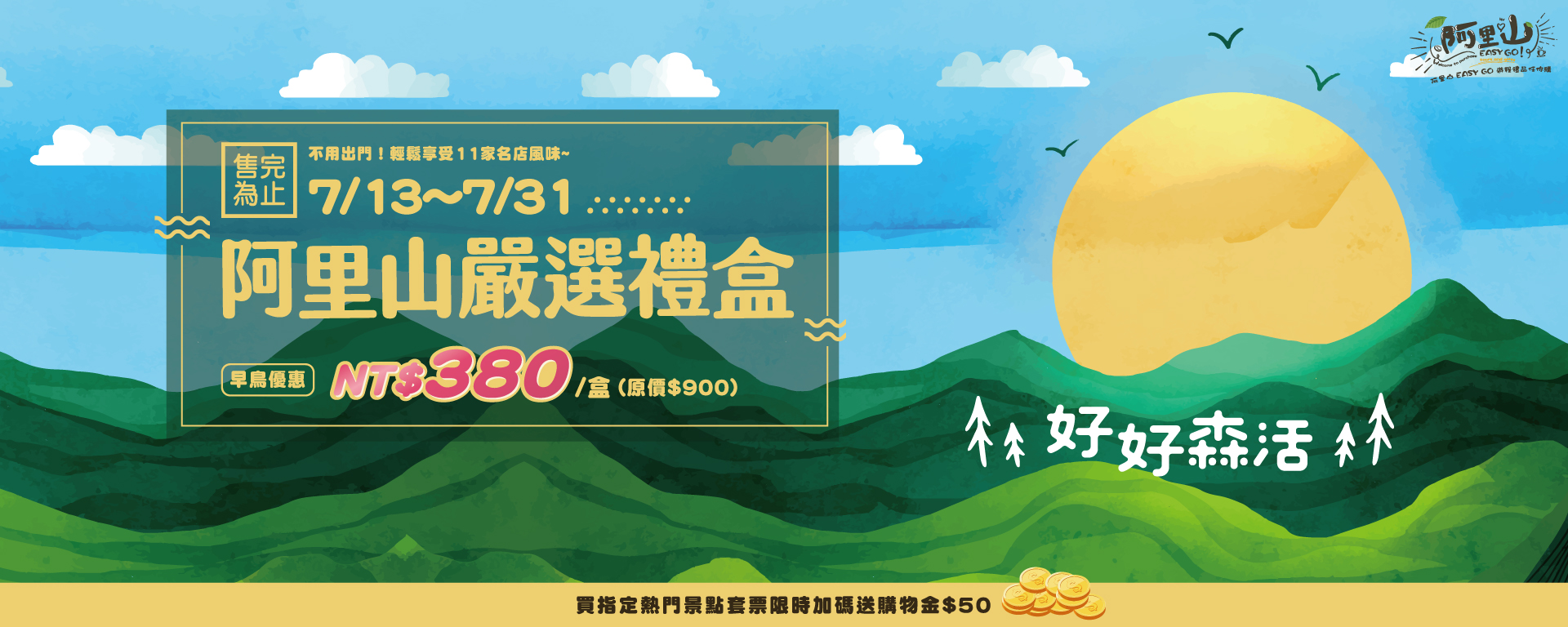 111/7/13(三)-111/8/10(三)買阿里山指定旅遊套票送在地商圈購物金$50元